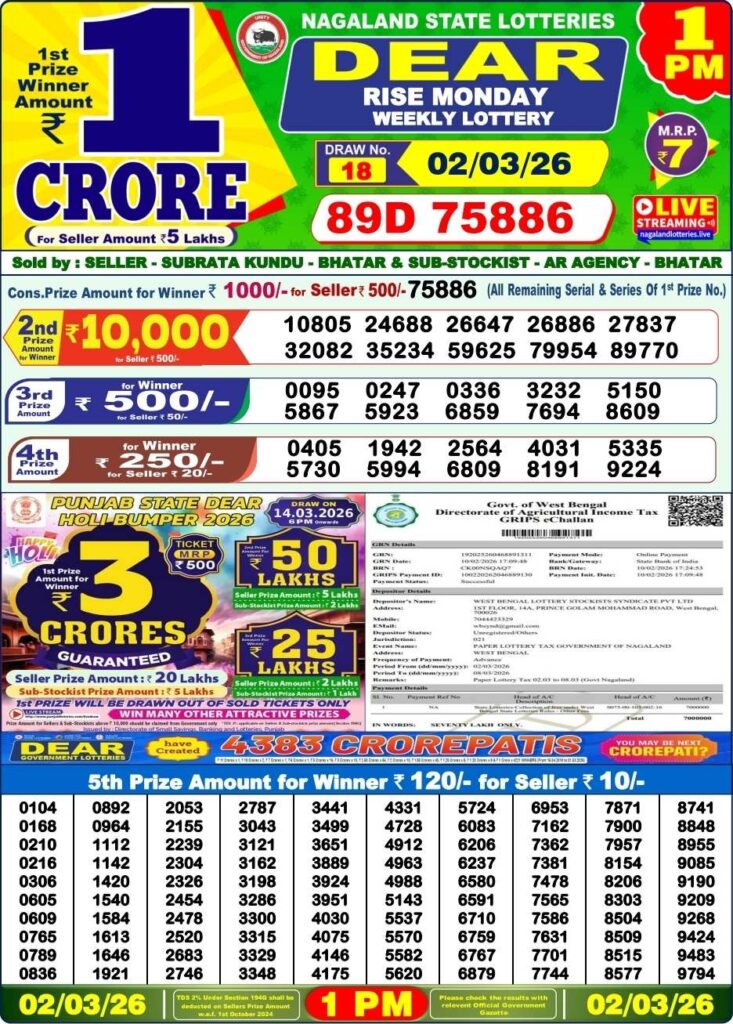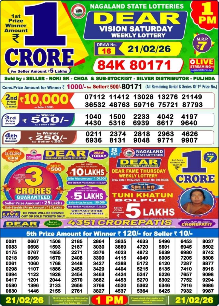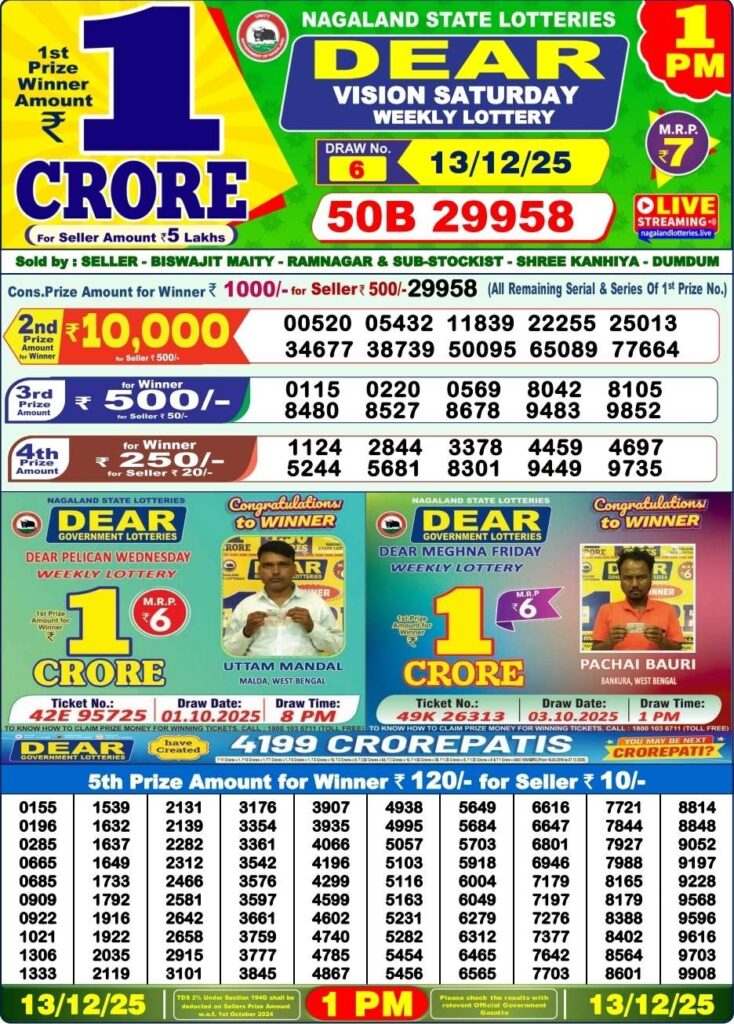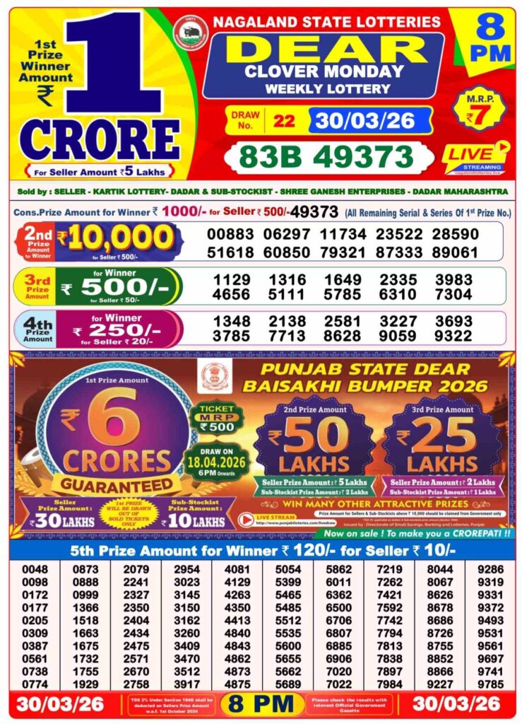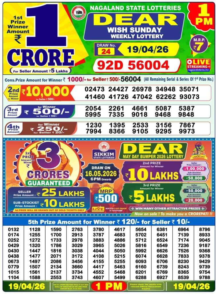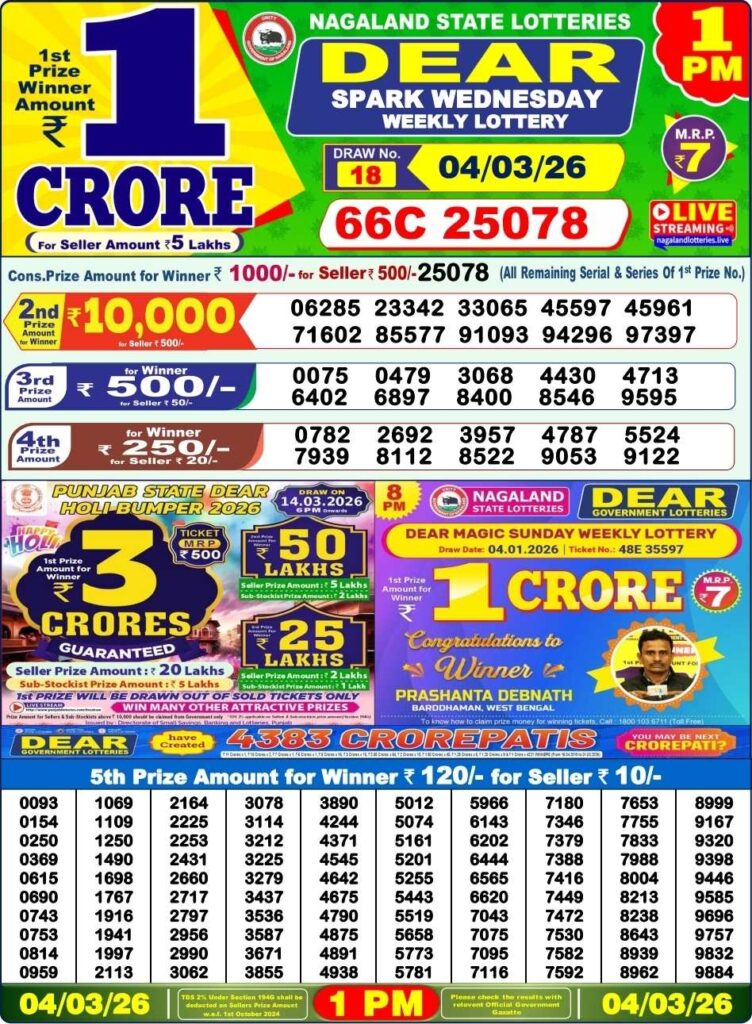 Dhankesari Lottery Sambad 1pm | Nagaland State Lottery Prize List