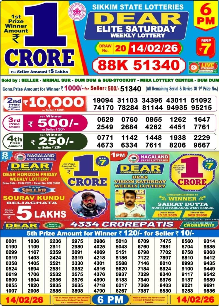 Dhankesari Today Result 15.2.2026 Lottery Sambad 1PM, 6PM and 8PM: Good morning my dear friends there you are in this website which will be alwyas been prouldy known to be as Dhankesrai lottery which is one of the most fastest website where this special post and all the other diffenrt posts can be daily been updated with the most latest lottery sambad results and there you can gets the chance to win the first prize of 1 crore rupees so friends there thsi special post can be updated with the mos latest Dhankesari lottery results 11am morning, 4pm day and 8pm evening result and its the day of Saturday 14th of February 2026 Happy Valentines day to you all and Black day for India its days sambad lottery which will be alwyas greatly known to be as Dhankesari lotteries and you know that in this post will be always updated in the best timing at 1:10pm, 6:10pm and 8:10pm.