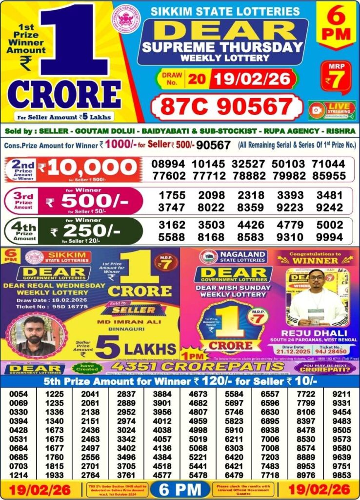 Dhankesari Today Result 20.2.2026 Lottery Sambad 1PM, 6PM and 8PM: There you are in thisspecial post is about for the most lovely and peoples favourite Dhankesari lottery results 11am morning, 4pm day and 8pm evening result and my dear friends there you know that this post and all the other differnt posts can be daily updated with the most lastest lottery sambad results and you can alwyas win the first prize of 1 crore rupees and other cash prizes if you needs the fastest delivery of the results then do us been shortcut as the site name which has been named as Dhakesrai lottery so its the day of lovely Wednesday 18th of February 2026 try your luck daily with us so its days most popular sambad lottery which will be alwyas been greatly named to be as it will be Dhankesari lotteries and you know that in this post will be always updated in the best timing at 1:10pm, 6:10pm and 8:10pm.