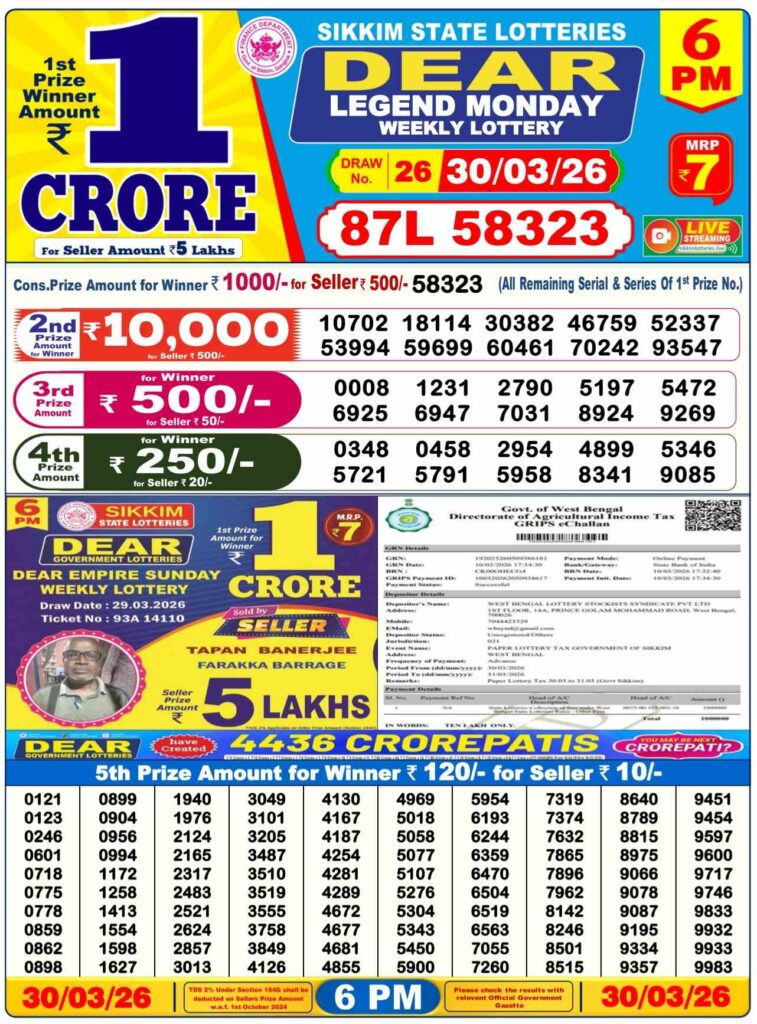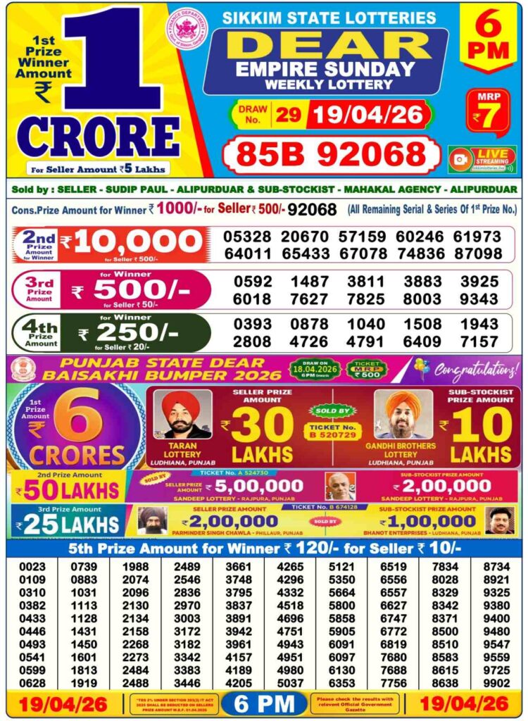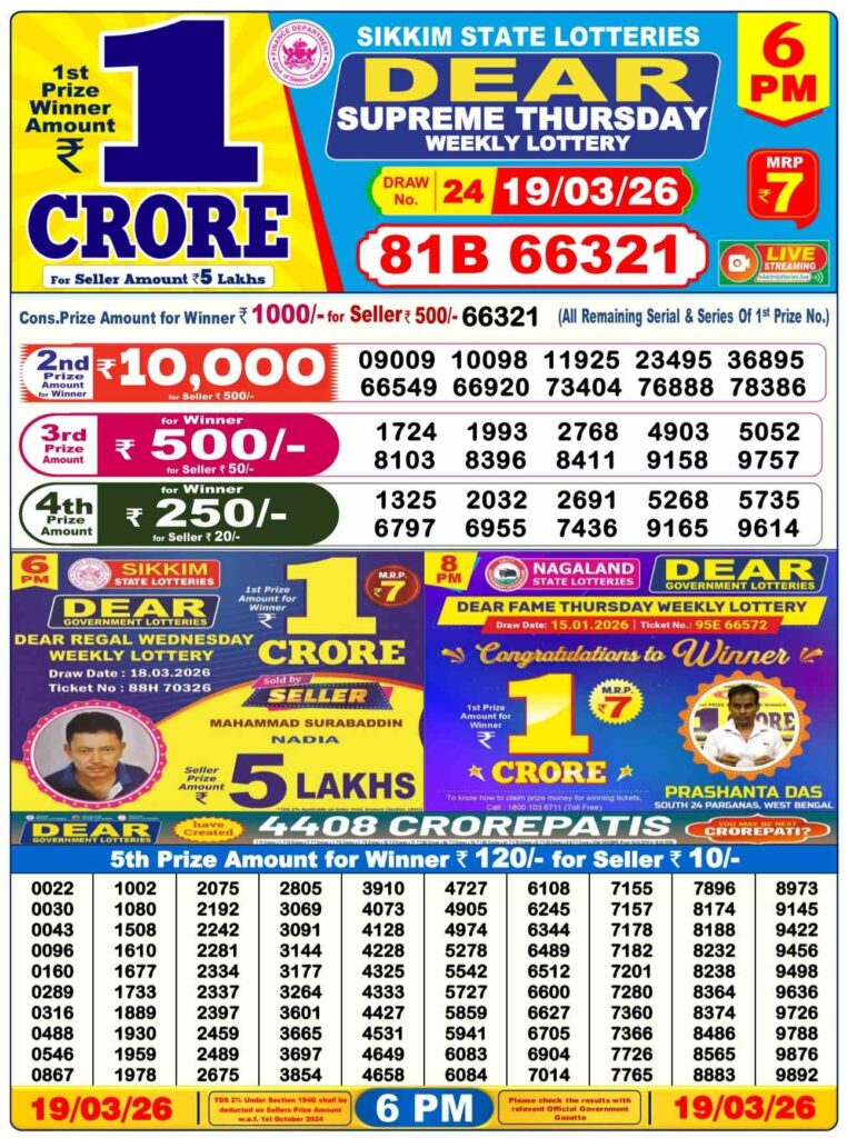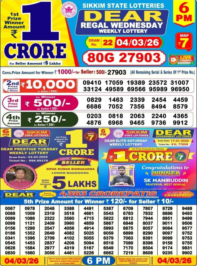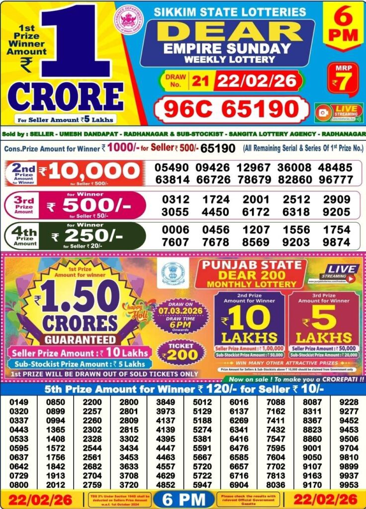 - Sikkim state lottery