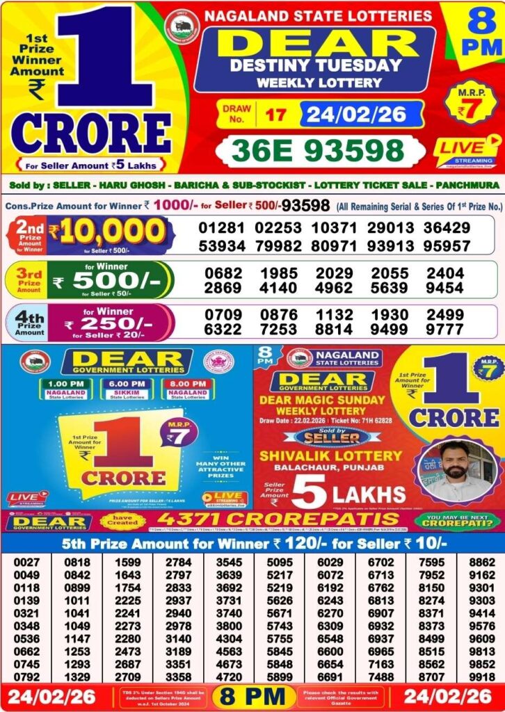 Dhankesari Today Result 24.2.2026 Lottery Sambad 1PM, 6PM and 8PM: Are you daily been serching for the most lovely and peopels favourite Dhankesari lottery results 11am morning, 4pm day and 8pm evening result and friends there you know that this special post and all the other differnt posts can be daily been updated with the most latest lottery sambad results and friends its many of the peopels life chnager and my dear friends if you wnats the fastest delivery of the results then do us been shortcut as the site name which has been told to be as Dhankesrai lottery and my dear friends its the day of Moday a new week started 23rd of February 2026 so its days peoples most lovely and aweosme sambad lottery which will be alwyas been posted the Dhankesari lotteries and you know that in this post will be always updated in the best timing at 1:10pm, 6:10pm and 8:10pm.