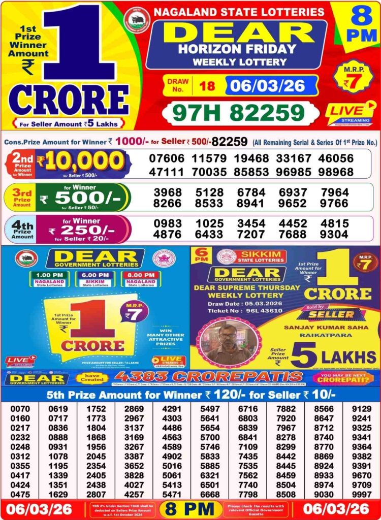 Dhankesari Today Result 7.3.2026 Lottery Sambad 1PM, 6PM and 8PM: Good morning my dear friends there you are landed at the site which has been known to be as Dhankesrai lottery one of the most fastest website where you daily being searhced for the lottery sambad results and friends it will be your game changer for the life time with the first prize of 1 crore rupees and friends this special post can be daily been updated with the most latest Dhankesari lottery results 11am morning, 4pm day and 8pm evening reuslt and its the another great morning of lovely Friday a free holiday 6th of March 2026 so its days one of the most popular sambad lottery which will be always bring to known to be as Dhankesari lotteries and you know that in this post will be always updated in the best timing at 1:10pm, 6:10pm and 8:10pm.