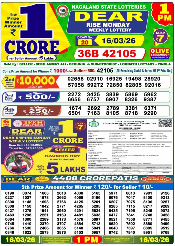 Dhankesari Today Result 17.3.2026 Lottery Sambad 1PM, 6PM and 8PM: Are you daily searching for the peopels most favourite Dhankesari lottery results 11am morning, 4pm day and 8pm evening result and friends there you know that this special post and all the other deatiled post is about to daily been updated with the most latest lottery sambad results and my dear friends there you can gets the chance to win the first prize of 1 crore rupees and friends if you needs the fastets delivery of the results then do us been shortcut as the site name which has been named as Dhankesrai lottery so its the another great morning of new week started means Monday 16th of March 2026 so its days peopels most searhced sambad lottery which will be alwyas been told to be as Dhankesari lotteries and you know that in this post will be always updated in the best timing at 1:10pm, 6:10pm and 8:10pm.