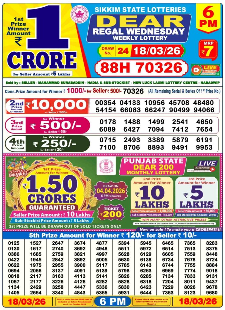 Dhankesari Today Result 19.3.2026 Lottery Sambad 1PM, 6PM and 8PM: Are you daily serching for the most lovely and peoples most favourite Dhankesari lottery results 11am morning, 4pm day and 8pm evening result and friends it will be your life chnager oppertunity where you know that this special post and all the other diffenrt posts can be daily been updated with lottery sambad results and friends there you can win many cash prize like first prize of 1 crore rupees and friends if you needs the fastest delivery of the results then do us been shortcut as the site name which has been named as Dhankesrai lottery so its the another great morning of of Wednesday 18th of March 2026 so friends its the peoples most searhced as popular sambad lottery which will be alwyas been greatly known to be as Dhankesari lotteries and you know that in this post will be always updated in the best timing at 1:10pm, 6:10pm and 8:10pm.