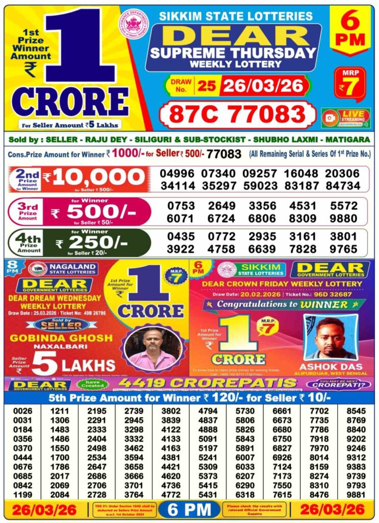 Dhankesari Today Result 27.3.2026 Lottery Sambad 1PM, 6PM and 8PM: Are you daily been searched for the most lovely Dhankesari lottery results 11am morning, 4pm day and 8pm evening result and my dear friends there you know that this special post and all the other diffenrt posts can be updated with the most latest lottery sambad results and there alwyas you can win the first prize of 1 crore rupees and other many cahs prizes and if you daily wants the fastest delivery of the results then do us been shortcut as the site name which is Dhankesari lottery so its the another great morning of Wednesday 25th of March 2026 so its days sambad lottery which will be alwyas been greatly known to be as it will be Dhankesari lotteries and you know that in this post will be always updated in the best timing at 1:10pm, 6:10pm and 8:10pm.