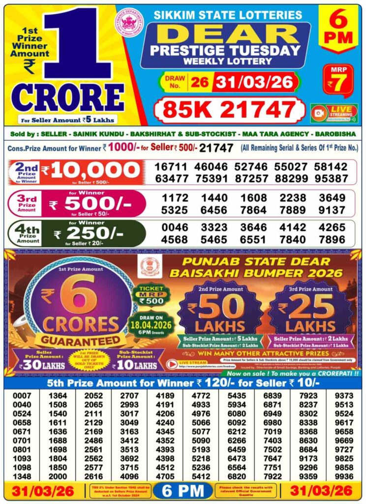 Dhankesari Today Result 1.4.2026 Lottery Sambad 1PM, 6PM and 8PM: Good day my dear friends there you are at the site named to be as Dhankesrai lottery which is one of the most fastest website where daily been updated with lottery sambad results and my dear friends there you are daily getting the chance to win many cash prizes like first prize of 1 crore rupees so friends this special post can be updated with the most popular Dhankesari lottery results 11am morning, 4pm day and 8pm evening result and its the another last day of the month 31st of March 2026 so its days peoples most searched and awesome sambad lottery which will be alwyas been knwon to be as Dhankesari lotteries and you know that in this post will be always updated in the best timing at 1:10pm, 6:10pm and 8:10pm.