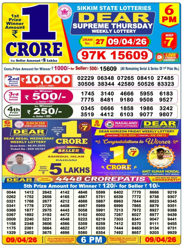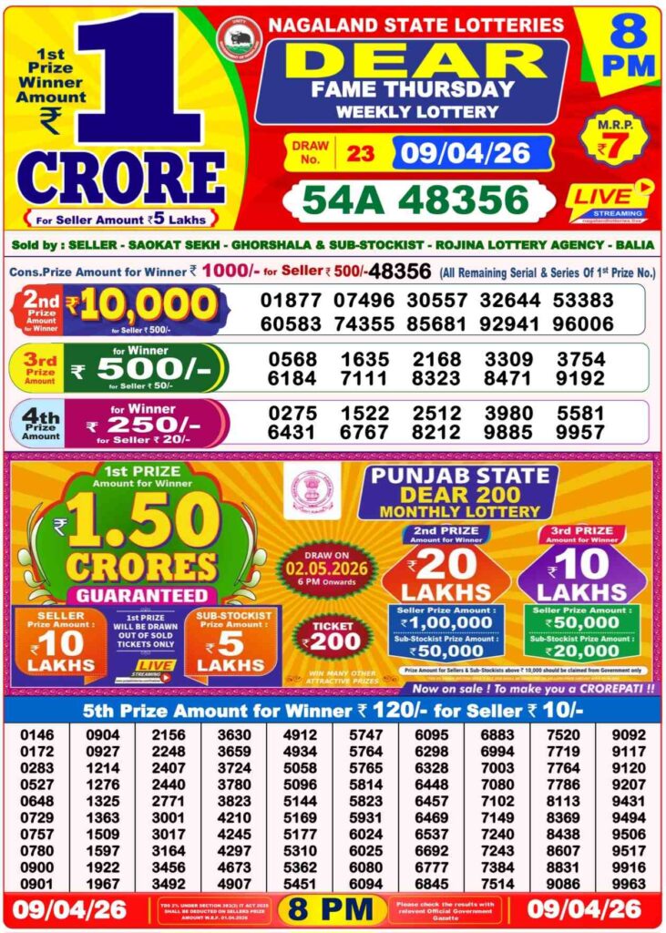 Dhankesari Today Result 9.4.2026 Lottery Sambad 1PM, 6PM and 8PM: There you are in this special website which has been alwyas been getting named to be as Dhankesari lottery which is one of the most fastest website where you are daily gets the chance to win the many cash prizes like first prize of 1 crore rupees and other cash prize and all the posts updated with the lottery sambad results and my dear friends you always been getting the most latest Dhankesari lottery results 11am morning, 4pm day and 8pm evening result and my dear friends its the another great morning of Thursday a great guruvar 9th of April 2026 so its days sambad lottery which will be alwyas been greatly known to be as it will be Dhankesari lotteries and you know that in this post will be always updated in the best timing at 1:10pm, 6:10pm and 8:10pm.