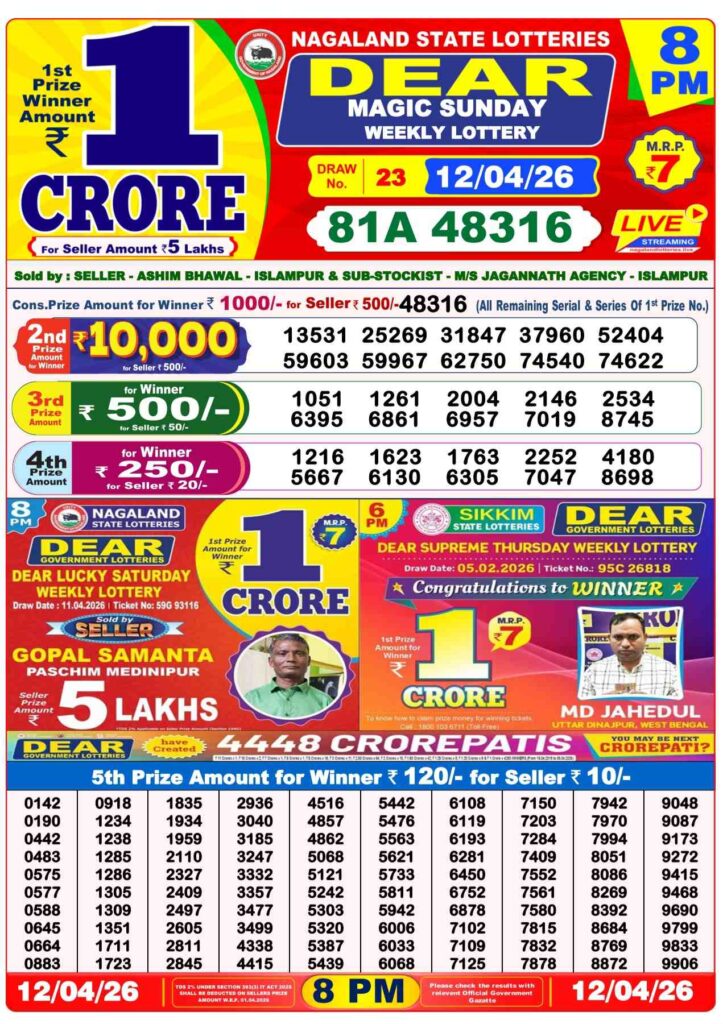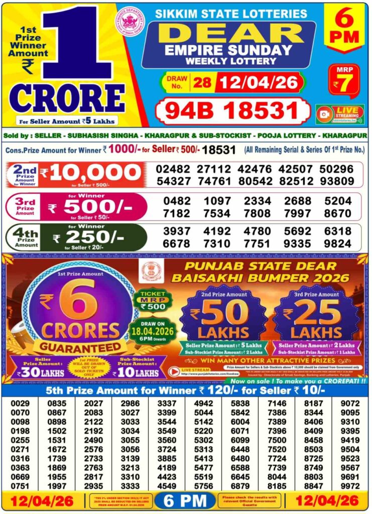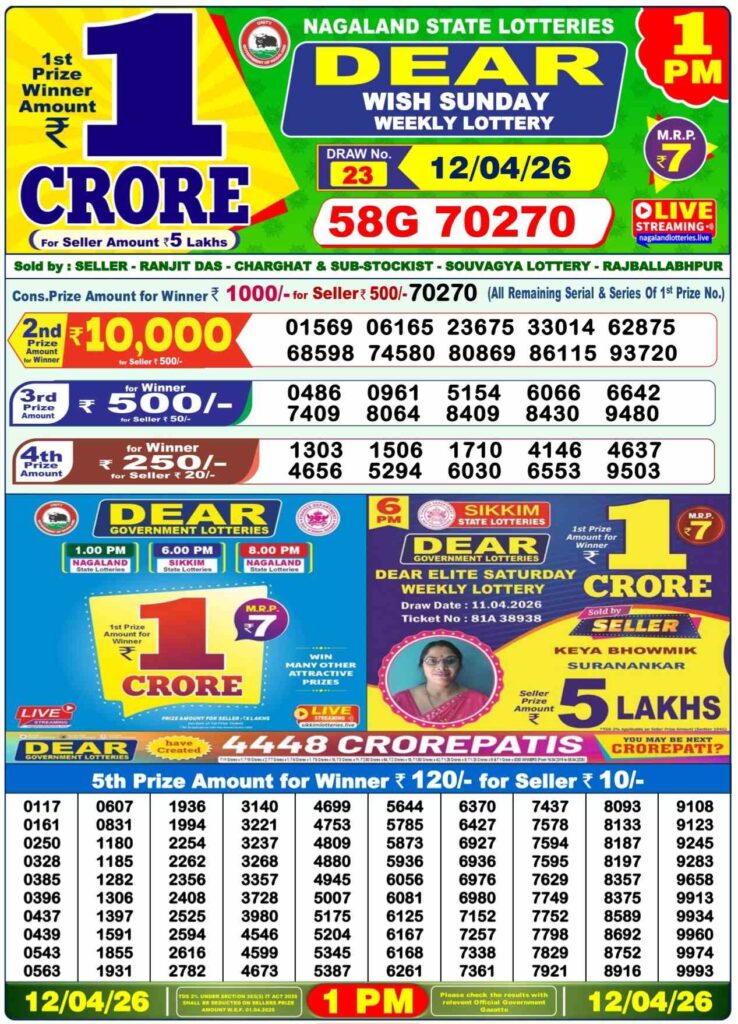Dhankesari Today Result 12.4.2026 Lottery Sambad 1PM, 6PM and 8PM: Good morning my dear viewers there you are in this special post which is provide you the daily basis of latest Dhankesari lottery results 11am morning, 4pm day and 8pm evening result and my dear friends there you are try your luck daily with us and you know that this post and other detailed different posts made updated with lottery sambad results and dear friends this can be your life chnager oppertunity if you wants the fastest delivery do us bookmarked as the site name which is Dhankesrai lottery so this is the another great day of Sunday a free holiday 12th of April 2026 so this special mornings most popular and awesome sambad lottery which will be alwyas been named to be as Dhankesari lotteries and you know that in this post will be always updated in the best timing at 1:10pm, 6:10pm and 8:10pm.