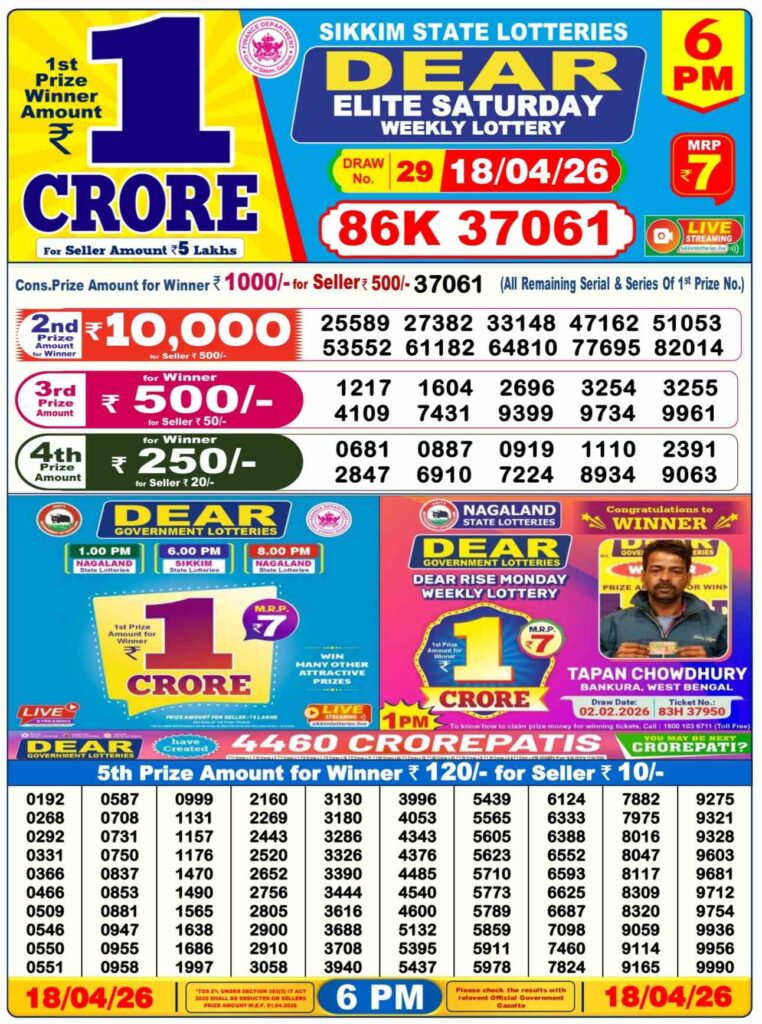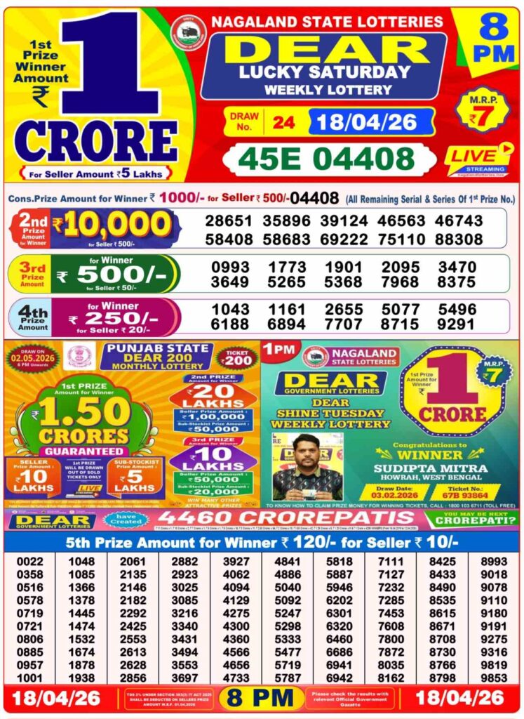 Dhankesari Today Result 19.4.2026 Lottery Sambad 1PM, 6PM and 8PM: Good morning my dear viewer there you are in this special post which is about for the Dhankesari lottery results 11am morning, 4pm day and 8pm evening result and this gives you the oppertunity to win many cash prizes and the first prize of 1 crore rupees and all the posts updated with the latest lottery sambad results and dear viewers if you wants the fastest delivery of the results then do us been created shortcut as the site name which is about named to be as Dhankesari lottery and its the another great morning of weekend means Saturday 18th of April 2026 so dear friends its days peoples most lovely sambad lottery which will be alwyas bring named as Dhankesari lotteries and you know that in this post will be always updated in the best timing at 1:10pm, 6:10pm and 8:10pm.