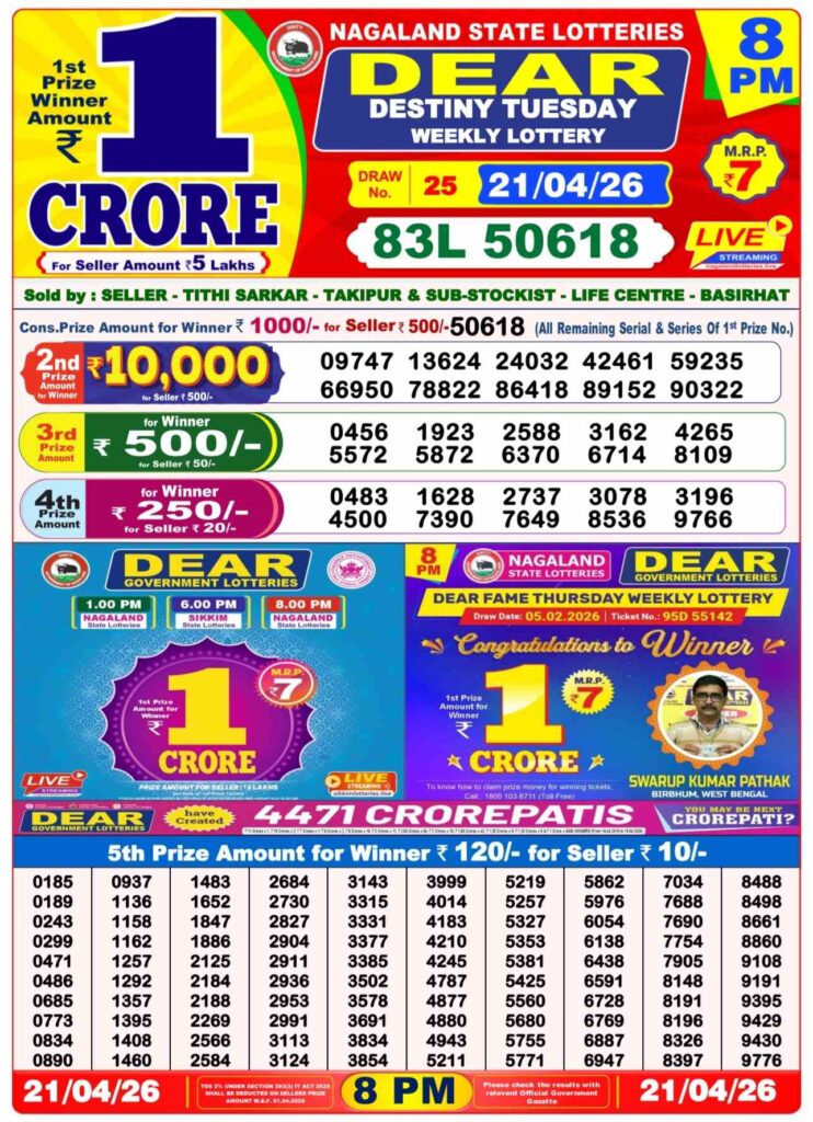 Dhankesari Today Result 21.4.2026 Lottery Sambad 1PM, 6PM and 8PM: There you are in this lovely website where you daily been getting landed at the site named as Dhankesrai lottery one of the most fastest website where you getting the most latest lottery sambad results and my dear viewers there you can getting the chance to win many cash prizes and the first prize of 1 crore rupees and there you alwyas know that that special post is alwyas about for the Dhankesari lottery results 11am morning, 4pm day and 8pm evening result and friends its the graat morning of Tuesday 21st of April 2026 so my dear friends its days most lovely sambad lottery which will be alwyas bring known to be as Dhankesari lotteries and you know that in this post will be always updated in the best timing at 1:10pm, 6:10pm and 8:10pm.