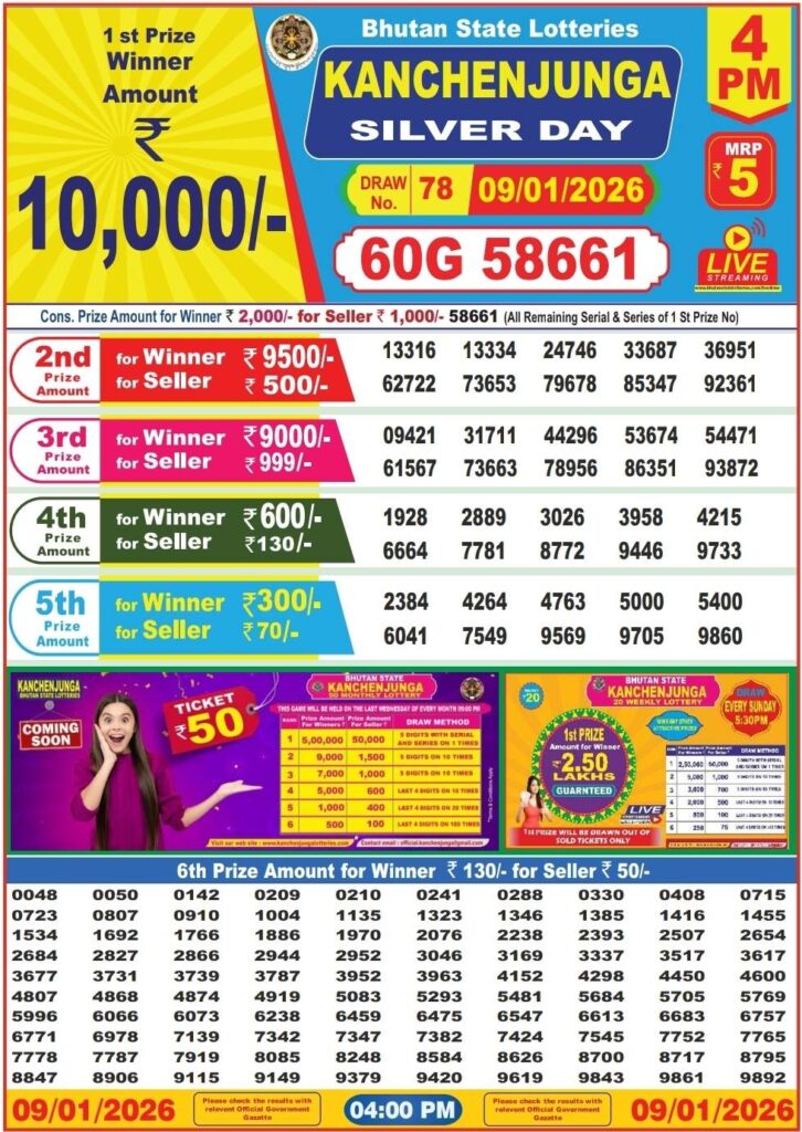 Bhutan Lottery Result Today 10.1.2026 Today 11:55AM 4PM 8PM: Good morning my dear friends there you are in this great detailed post is about for the mos latest Bhutan lottery result 11am morning, 4pm day and 8pm evening result and viewers you know that we are most fastest result provider in the whole industry of the most lovely lottery sambad results and friends there you can win the many cash prizes and first prize of 1 crore rupees and friends if you wants the fastest delivery of the results then do us been create shortcut as the site name which has been named to be as Dhankesari lottery and its the day of 9th of January 2026 its days sambad lottery which will be always been greatly known to be as it will be Bhutan lotteries and you know that in this post will be always updated in the best timing at 12:10pm 4:10pm 8:10pm.