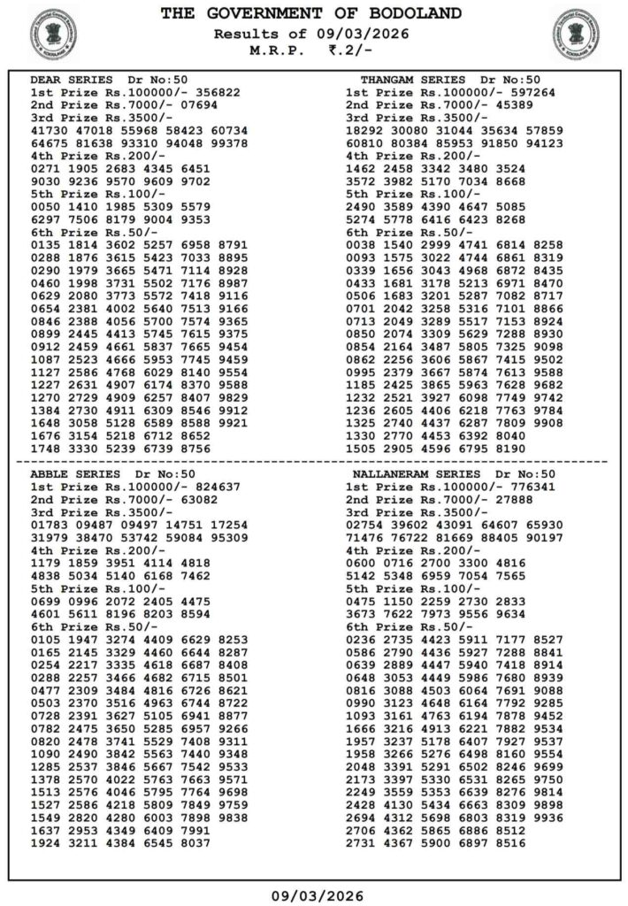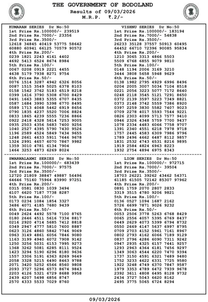 Bodoland Lottery Result Today 3PM 10.3.2026 Assam State Lottery: Are you daily been searched for the most lovely and awesome Bodoland lottery results 3pm day result and friends there you are in this special post and all the other diffenrt posts can be udpated with the most latest and popular lottery sambad results and where you can gets the daily oppertunity to win the first prize of 1 crore rupees and other cahs prizes if you wants the fastet delivery of the reuslts then do us been shortcut as site name which is Dhankesrai lottery so its the another diffenrt weeks started means Monday 9th of March 2026 so its days peoples most favourite sambad lottery which will be alwyas been told to be as Bodoland lotteries and you know that in this post will be always updated in the best timing at 3:10pm.