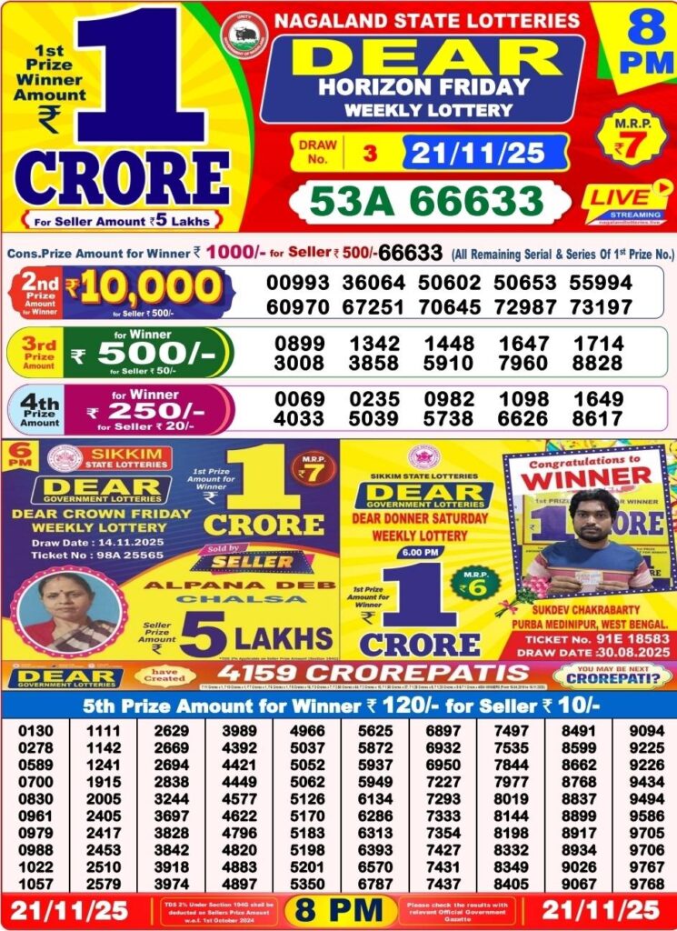 Nagaland State Lottery 22.11.2025 Result 8PM Lottery Sambad Result: There are you searching for the most popular and most lovely Nagaland state lottery 8pm evening result and dear friends this posts gives you the oppertunity to win the first prize of 1 crore rupees and all the diffenrte posts can be daily been updated with the most popular lottery sambad results and if you needs the fastest delivery of the results then do us been created bookmarked as the site name which has been named to be as Dhankesrai lottery and its the another great day of lovely Saturday 22nd of November 2025 so this special days most peoples searched sambad lottery which will be alwyas bring known to be as it will be Nagaland state lotteries DEAR OSTRICH EVENING and you know that in this post will be always updated in the best timing at 8:10pm.