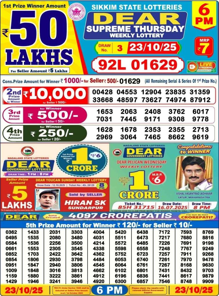 | Today Lottery Name | DEAR EARTH FRIDAY |
